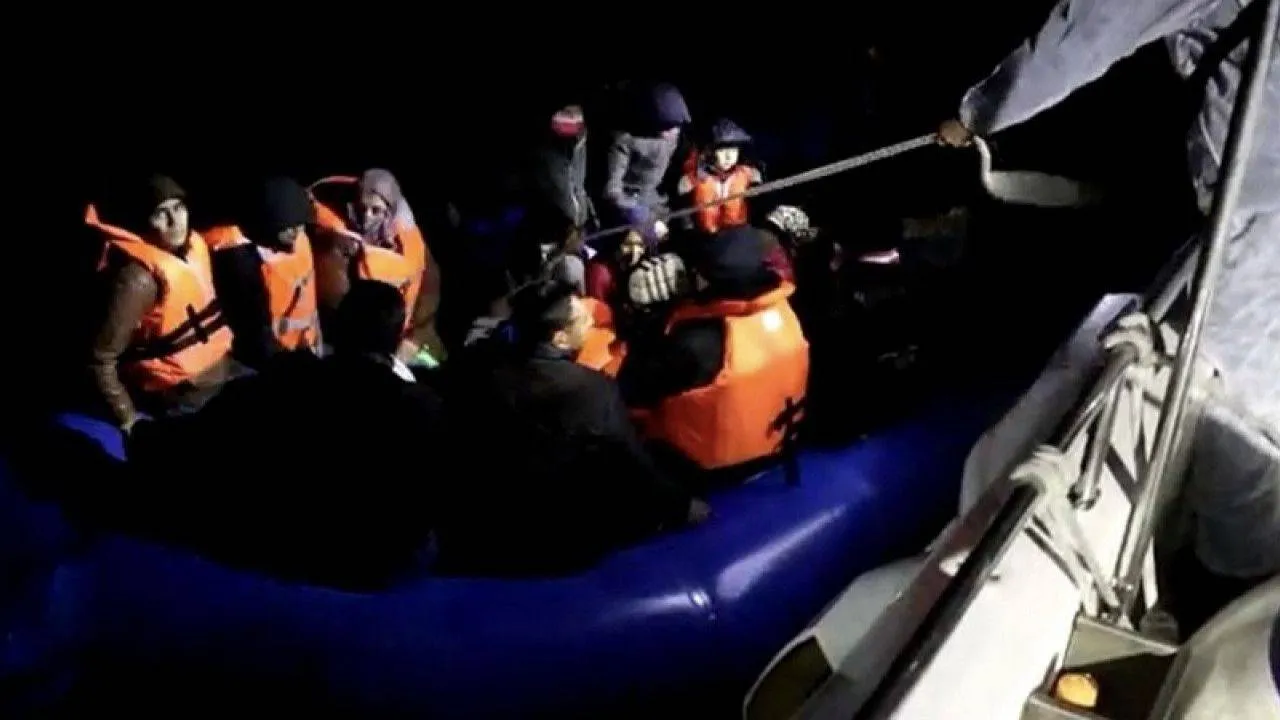 Çanakkale’nin Ezine ilçesi açıklarında Sahil Güvenlik ekiplerince lastik bot içinde 32 kaçak göçmen yakalandı.