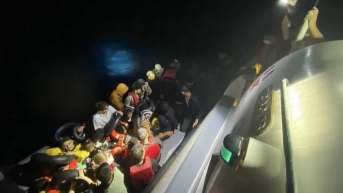 Çanakkale'nin Ezine ilçesi açıklarında hareket halindeki durdurulan lastik bot içinde 56 kaçak göçmen Sahil Güvenlik ekiplerince yakalandı.