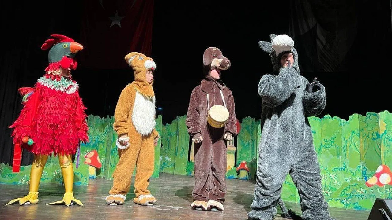 Çanakkale'nin Ezine ilçesi Atatürk Kültür Merkezi'nde 2022-2023 eğitim-öğretim yılı yarı tatiline giren öğrenciler için karne hediyesi olarak 'Bremen Mızıkacıları' adlı çocuk tiyatrosu sahnelendi.