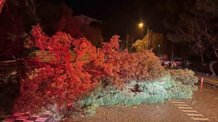 Ezine'de fırtına nedeniyle ağaç devrildi, kapanan yol belediye ekiplerince açıldı