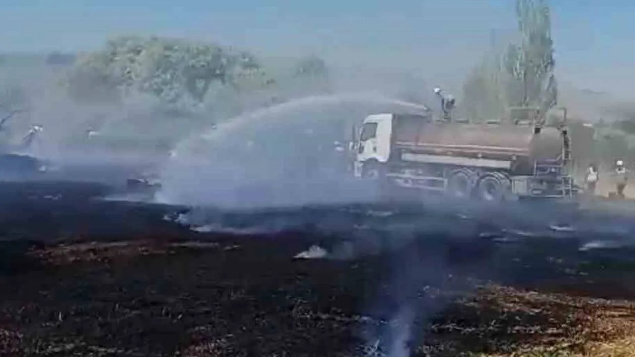 Ankara'nın Elmadağ ilçesinde bir fabrikanın çöplük alanında çıkan yangın çevredeki araziye sıçradı. İtfaiye ekiplerinin çalışması sonucu yangın kısa sürede söndürüldü.