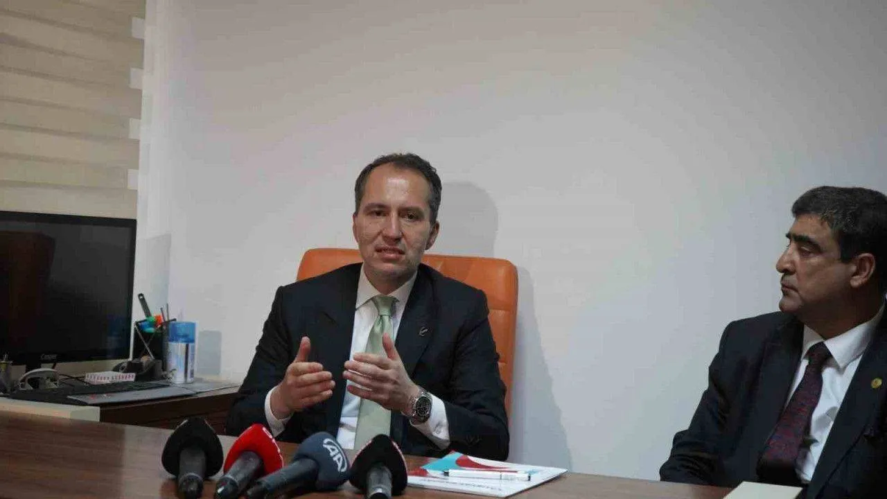 Ankara’da çeşitli dernek başkanlarıyla buluşan Erbakan, Yeniden Refah Partisi’nin son seçimlerden bu yana önemli gelişmeler kaydettiğini vurgulayarak, “Yeniden Refah Partisi 4 buçuk senede çok ciddi mesafe aldı. 300 bine yakın resmi üyesi, 100 bine yakın sandık baş müşahidi, 81 ilde 900’den fazla ilçede teşkilatlanmasını tamamladı. 81 ilin tamamında hanım ve gençlik teşkilatları, binlerce köy ve mahalle teşkilatı ve ikisi de birbirinden muazzam kongreyi gerçekleştirdik. 60 binden fazla katılımcıyla Türk siyaset tarihine geçen bir kongre gerçekleştirdik. Bütün bunlar ile birlikte doğruya doğru, yanlışa yanlış diyen, çözüm önerileri ortaya koymaya çalışan, şahıslar üzerinden siyaset yapmayan, siyasete nezaket getirmeye çalışan, uygun üslupla rencide etmeyen bir muhalefet anlayışını ortaya koyduk. Bu teşkilat çalışmaları ve aynı zamanda bu siyaset ve muhalefet anlayışı da milletimizin teveccühünü almamıza ön ayak oldu. Bu vesileyle seçimler öncesinde Yeniden Refah Partisi Türkiye’nin anahtar partisi oldu. 87 seçim bölgesinde kendi amblemimiz ve kendi adaylarımızla seçime giriyoruz” dedi.