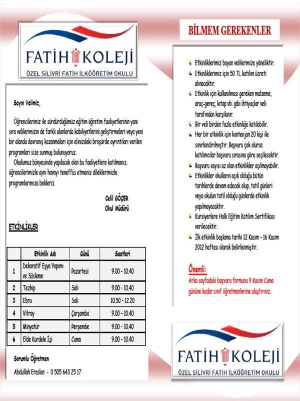 Silivri Fatih Koleji, Öğrencileri ile sürdürdüğü eğitim öğretim faaliyetlerinin yanı sıra velilerinin de farklı alanlarda kabiliyetlerini geliştirmeleri veya yeni bir alanda davranış kazanmaları için veli kursları başlatıyor.