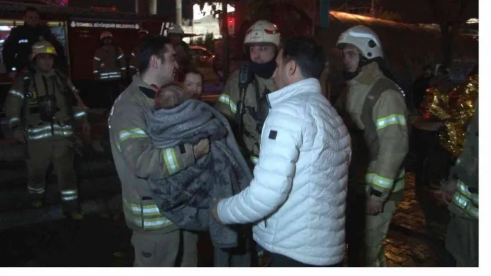 Fatih'te 6 katlı otelde yangın çıktı. Mahsur kalan 60 kişi itfaiye ekipleri tarafından otelden tahliye edilirken yangın kısa sürede söndürüldü. İtfaiye eri kucağında çıkardığı çocuğu üşümesin diye battaniyeye sararak tuttu. Otel içinden çıkarılan papağanların su kabına polis memur su koydu.