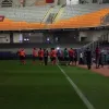 Hakemler ve futbolcular daha sonra sahanın içinde elektriklerin gelmesini bekledi.