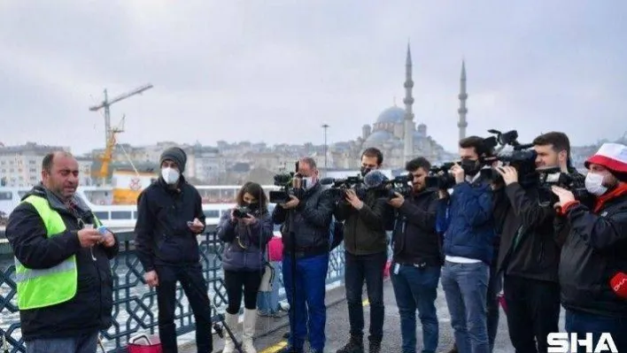 Fatih Belediyesi tarafından 10 Ocak Çalışan Gazeteciler Günü dolayısıyla düzenlenen etkinlikte basın mensupları, Galata Köprüsü üzerinde Haliç’e olta atarak balık tuttu.