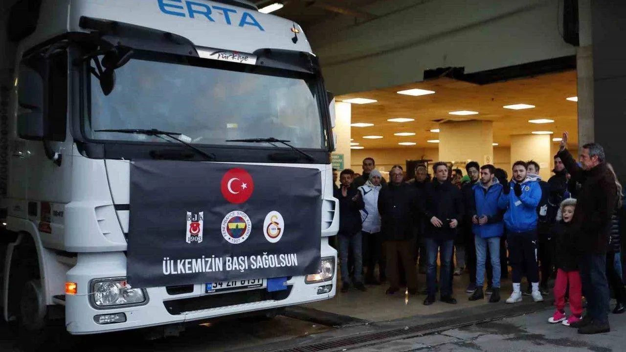 Fenerbahçe Kulübü, Galatasaray ve Beşiktaş'ın da logolarının yer aldığı 3 yardım tırının afet bölgesinden yola çıktığını duyurdu.