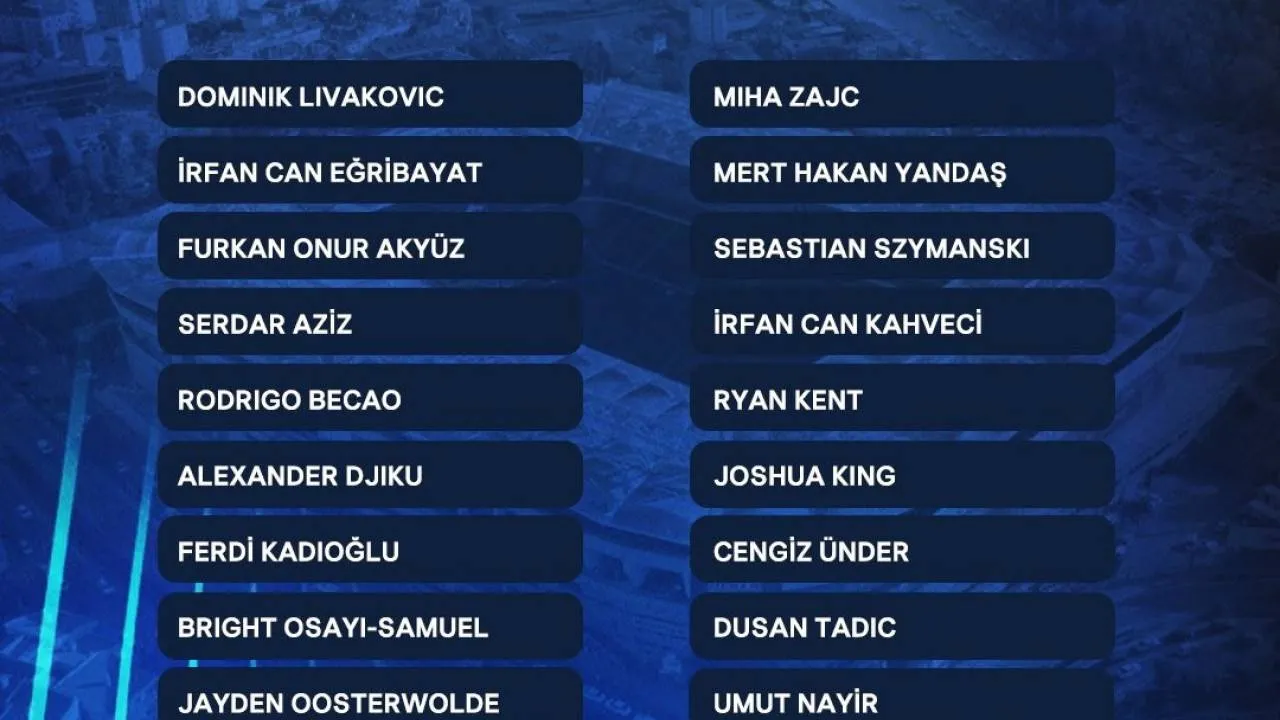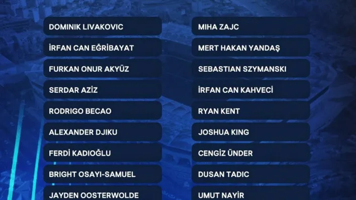 "Dominik Livakovic, İrfan Can Eğribayat, Furkan Onur Akyüz, Serdar Aziz, Rodrigo Becao, Alexander Djiku, Ferdi Kadıoğlu, Bright Osayi-Samuel, Jayden Oosterwolde, Miguel Crespo, İsmail Yüksek, Fred, Miha Zajc, Mert Hakan Yandaş, Sebastian Szymanski, İrfan Can Kahveci, Ryan Kent, Joshua King, Cengiz Ünder, Dusan Tadic, Umut Nayir, Michy Batshuayi, Edin Dzeko."
