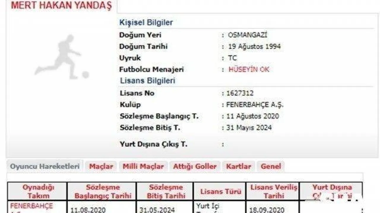 FENERBAHÇE'NİN YENİ TRANSFERLERİNDEN OLAN MERT HAKAN YANDAŞ'IN LİSANSI ÇIKTI.