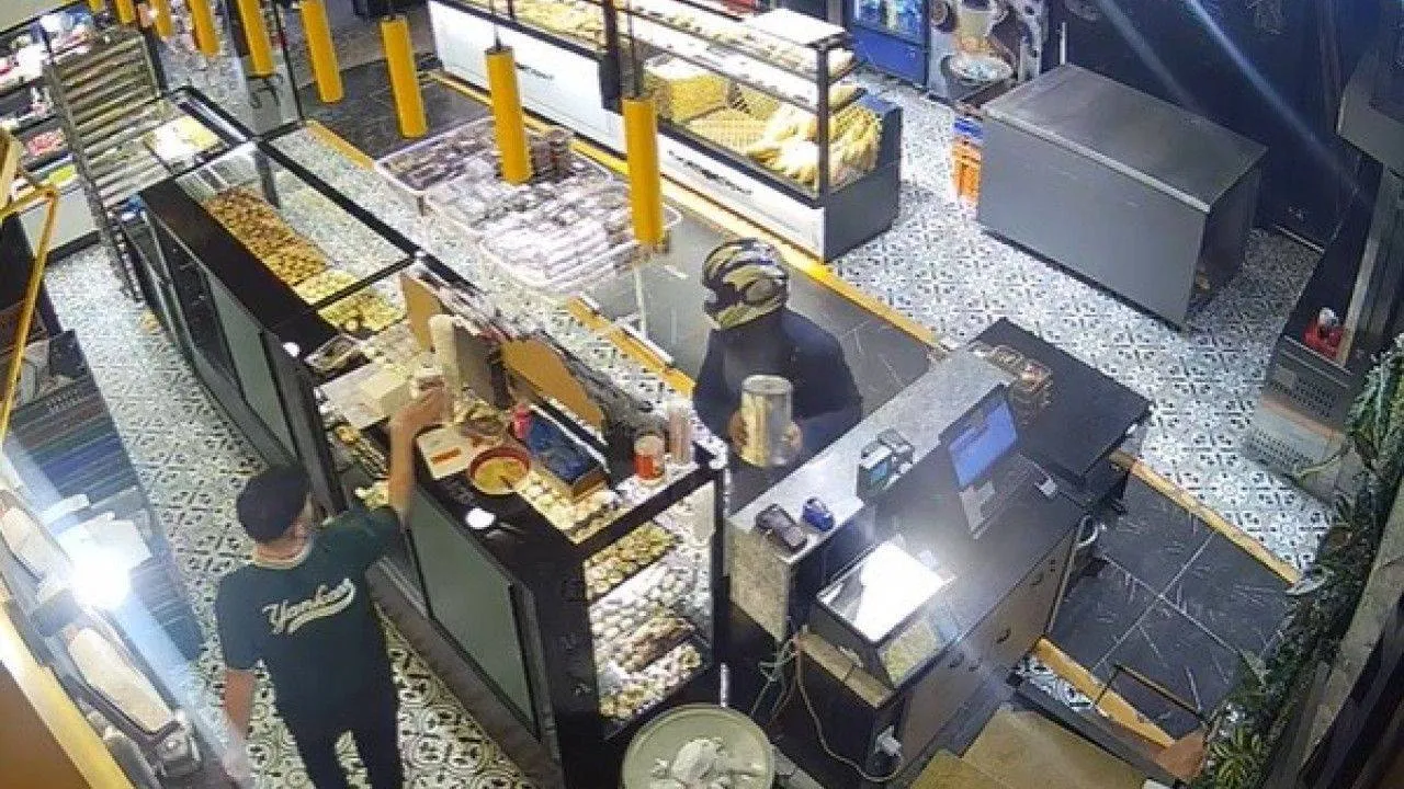 Olay güvenlik kamerası tarafından saniye saniye kaydedildi. Motosikletle fırının önüne gelen kasklı iki şüpheliden biri içeri girip kuru pasta fiyatı soruyor. Daha sonra kutuyu alan şahsın dışarıdaki motosiklete binip uzaklaştığı anlar görülüyor.