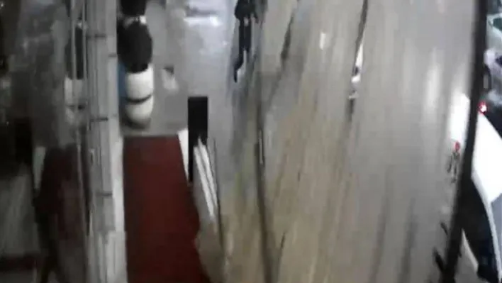 Ankara'da bir vatandaş ile köpek, fırtınadan dolayı kopan balkon çatısının altında kalmaktan son anda kurtuldu. Korku dolu o anlar güvenlik kamerasına yansıdı.