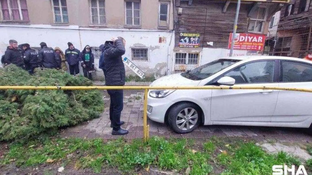 Fırtınanın uçurduğu ağaçlar araçların üzerine devrildi