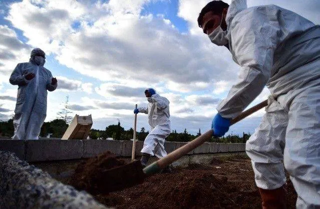 Cenaze işlemini yapan personeller özel kıyafetler kullanıyor
