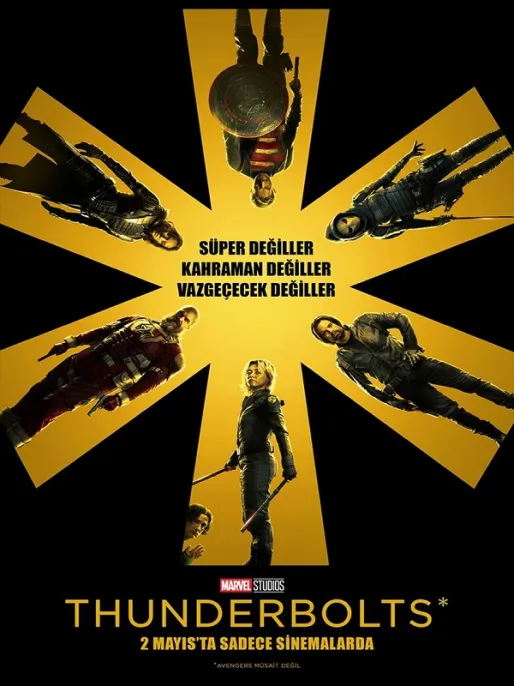 Thunderbolts filminde, alışılmışın dışında bir anti-kahraman ekibi bir araya geliyor: Yelena Belova, Bucky Barnes, Red Guardian, Ghost, Taskmaster ve John Walker. Valentina Allegra de Fontaine’in kurduğu ölümcül bir tuzağa düşen bu dışlanmış karakterler, geçmişlerinin en karanlık yönleriyle yüzleşmek zorunda kalacakları tehlikeli bir göreve çıkıyor.