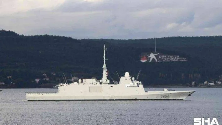 Fransız savaş gemisi Çanakkale Boğazı'ndan geçti
