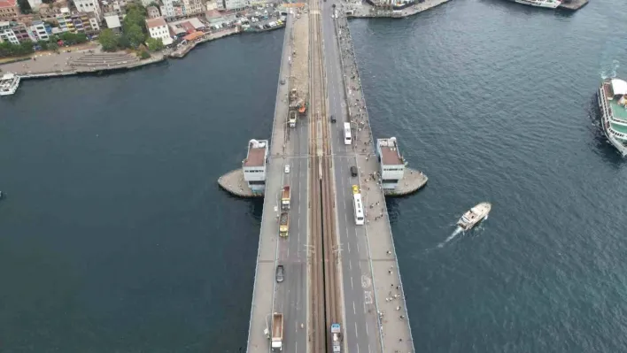 Öte yandan çalışmaların devam ettiği Galata Köprüsü dron ile havadan görüntülendi.