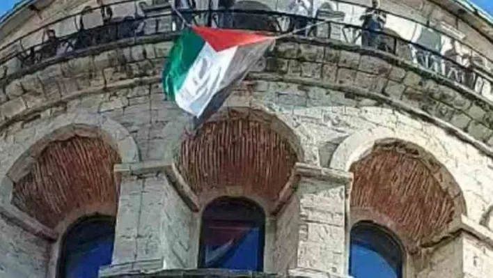 İsrail’in Gazze’ye yönelik saldırıları sürdüğü esnada bir grup gönüllü vatandaş, Beyoğlu’ndaki Galata Kulesi’ne çıkarak destek amaçlı Filistin bayrağı açtı.