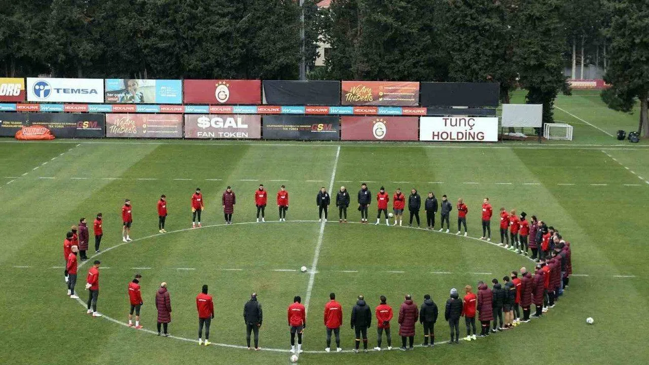 Galatasaray, bugün yaptığı antrenman öncesi depremde hayatını kaybedenler için saygı duruşunda bulundu.