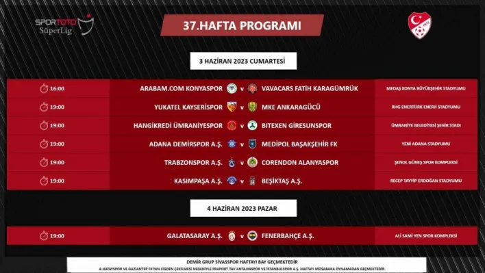 Spor Toto Süper Lig’de 37. hafta programı şöyle: