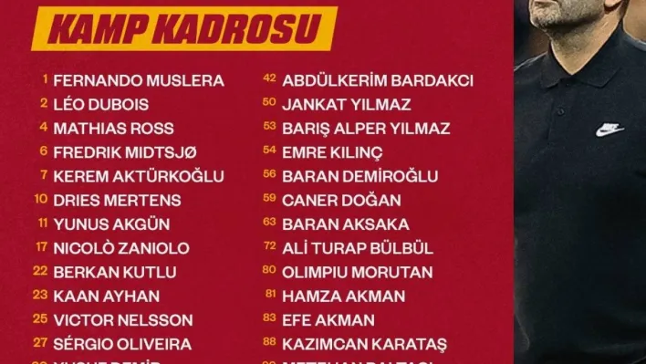 Fernando Muslera, Leo Dubois, Mathia Ross, Fredrik Midtsjö, Kerem Aktürkoğlu, Dries Mertens, Yunus Akgün, Nicolo Zaniolo, Berkan Kutlu, Kaan Ayhan, Victor Nelsson, Sergio Oliveira, Yusuf Demir, Lucas Torreira, Batuhan Şen, Emin Bayram, Abdülkerim Bardakcı, Jankat Yılmaz, Barış Alper Yılmaz, Emre Kılınç, Baran Demiroğlu, Caner Doğan, Baran Aksaka, Ali Turap Bülbül, Olimpiu Morutan, Hamza Akman, Efe Akman, Kazımcan Karataş, Metehan Baltacı, Sacha Boey, Berk Balaban