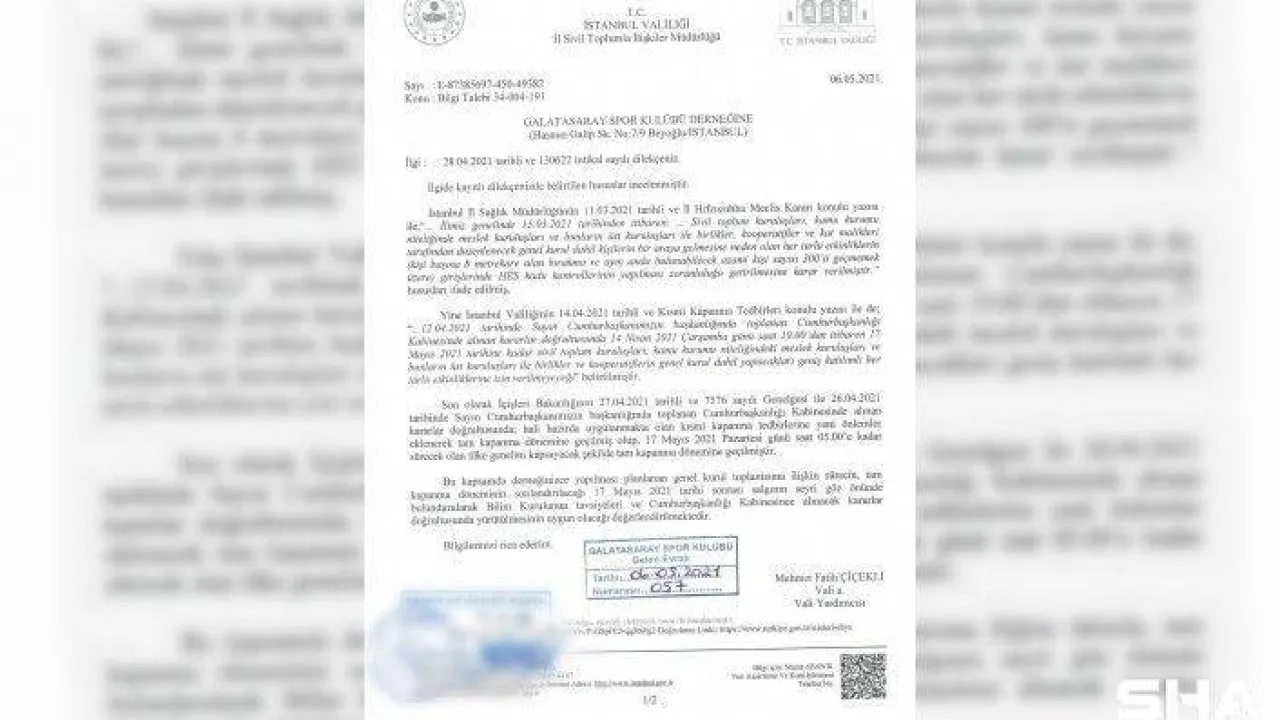 Galatasaray Spor Kulübü, pandemi koşullarının imkan vereceği en yakın tarihte, Haziran 2021 hedeflenerek, Olağan Seçimli Genel Kurul Toplantısı tarihinin açıklanacağı duyurdu. Sarı-kırmızılıların resmi internet sitesinden konuyla ilgili yaptığı açıklamada, "T.C İstanbul Valiliği İl Sivil Toplumla İlişkiler Müdürlüğü’nün ekte bulunan 6 Mayıs 2021 tarihli yazısı ve 5 Mayıs 2021 tarihli Yönetim Kurulu kararımız uyarınca tam kapanma döneminin sonlandırılacağı 17 Mayıs 2021 tarihi sonrası açıklanması beklenilen yeni idari tedbirler göz önünde bulundurularak, pandemi koşullarının imkan vereceği en yakın tarihte (Haziran 2021 tarihi hedeflenerek) yapılmak üzere, Olağan Seçimli Genel Kurul Toplantı tarihinin açıklanacağı kamuoyuna saygıyla duyurulur" denildi.