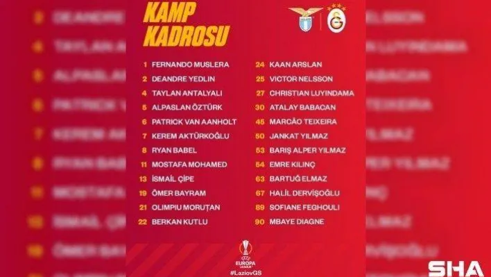 UEFA Avrupa Ligi E Grubu son maçında deplasmanda İtalyan ekibi Lazio ile karşılaşacak olan Galatasaray'ın kamp kadrosu belli oldu.
