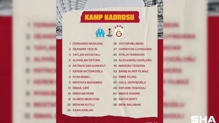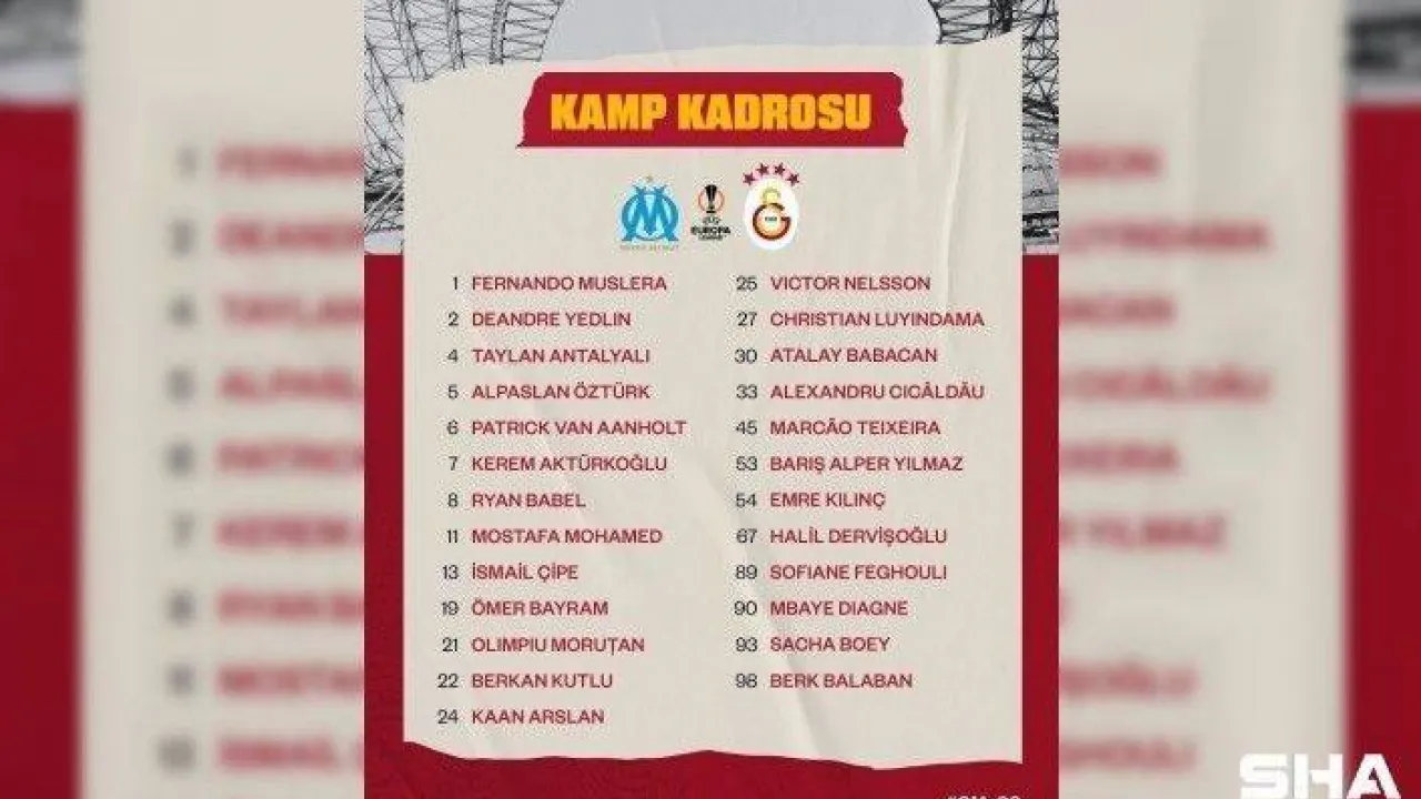 Galatasaray'ın UEFA Avrupa Ligi E Grubu'nda Marsilya ile deplasmanda oynayacağı mücadelenin kamp kadrosu belli oldu.