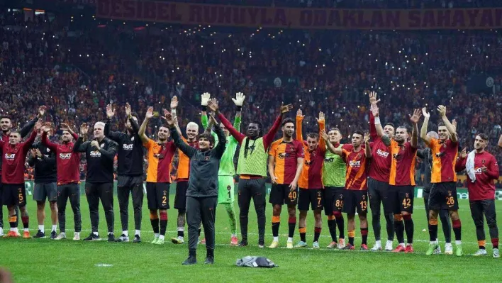 Galatasaray'da futbolcular ve teknik ekip, Beşiktaş derbisi sonrasında taraftarların yanına giderek galibiyeti beraber kutladı.