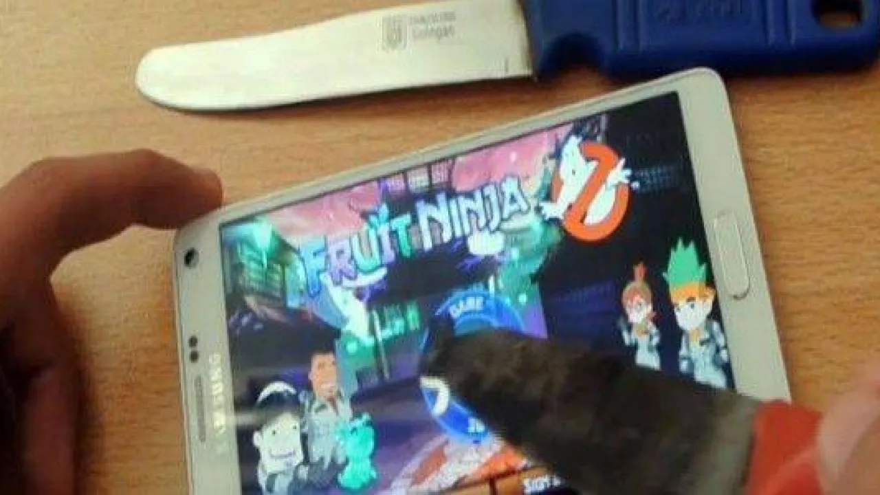 Samsung Galaxy Note 4'ün ekranının sağlamlığını test etmek isteyen bir kişi, bıçakla Fruit Ninja oynadı. Daha önce akıllı telefonlara uygulanan bükülme,kırılma gibi birçok test yapılmıştı ama bu test diğerlerinden daha farklı. Ekranın sağlamlığını test etmek isteyen kişi, elindeki bıçakla herkes tarafından tanınan Fruit Ninja oyununu oynadı. Sonucunda ise ekranda tek bir çizik bile olmaması izleyenleri hayrete düşürdü.