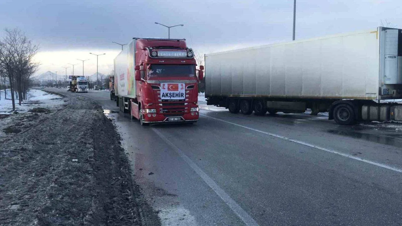 Geçiş güzergahı Konya'da yardım tırı yoğunluğu