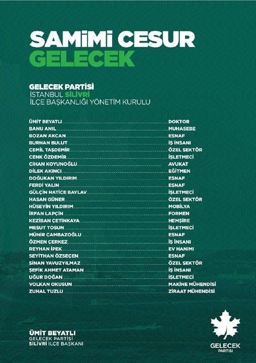 Silivri'de geçmişte bir çok siyasi partide yer almış ve tanınmış isimlerin transferleri ile beraber esnaf, hemşire, ev hanımı, ziraat mühendisi, makine mühendisi, eğitimciden oluşan güçlü bir yönetim kadrosu göze çarpıcı bir şekilde yönetimini belirledi.