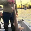 Bursa’nın Gemlik ilçesi açıklarında balık tutan balıkçıların oltasına yaklaşık 140 santimetre uzunluğunda bir köpek balığı takıldı.