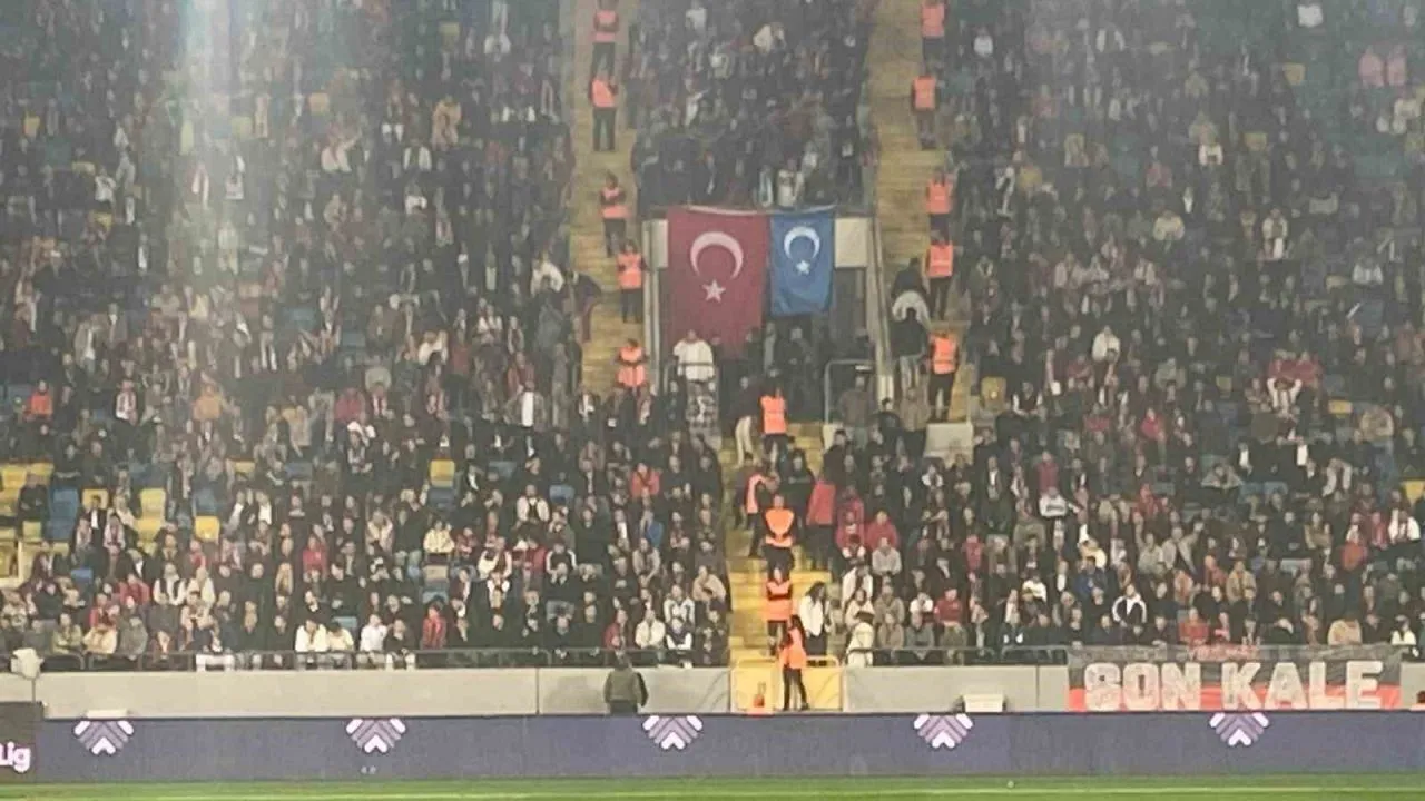 Gençlerbirliği taraftarları tribüne Doğu Türkistan bayrağı astı