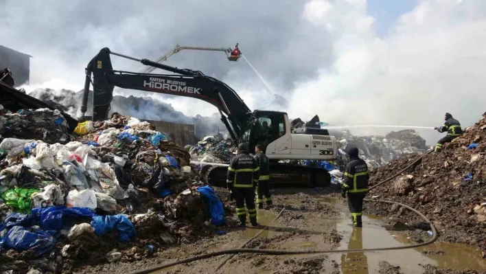Geri dönüşüm fabrikasında 18 saattir soğutma çalışması yapılıyor