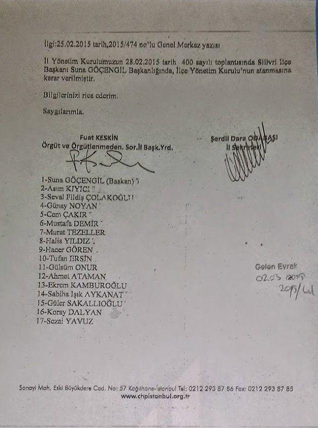 Mevcut ilçe başkanı mumin tuglu'nun 2015 genel seçimlerinde milletvekili aday adayı olup ilçe başkanlığı 'ndan istifa etmesi üzerine boş kalan ilçe başkanlığı koltuğuna Suna Göçengil atandı.