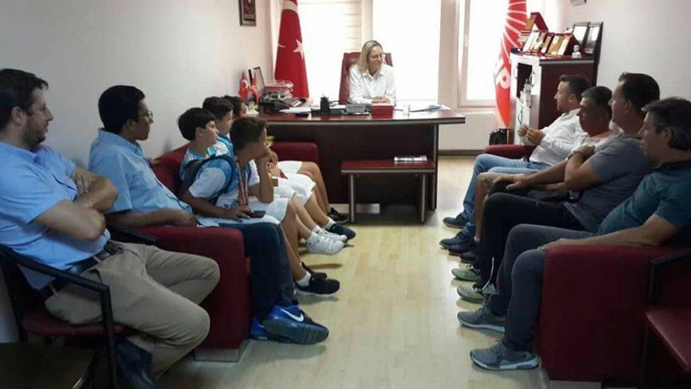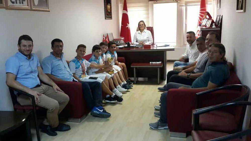 Cumhuriyet Halk Partisi İlçe Başkanı Suna Göçengil, geçtiğimiz günlerde Samsun'da yapılan turnuvada Türkiye Şampiyonu olan Ata Efe Bıyıklı, Kuzey Yalım, Kerem Mutlu, Dilşer Göçmen'i makamında kabul etti.
