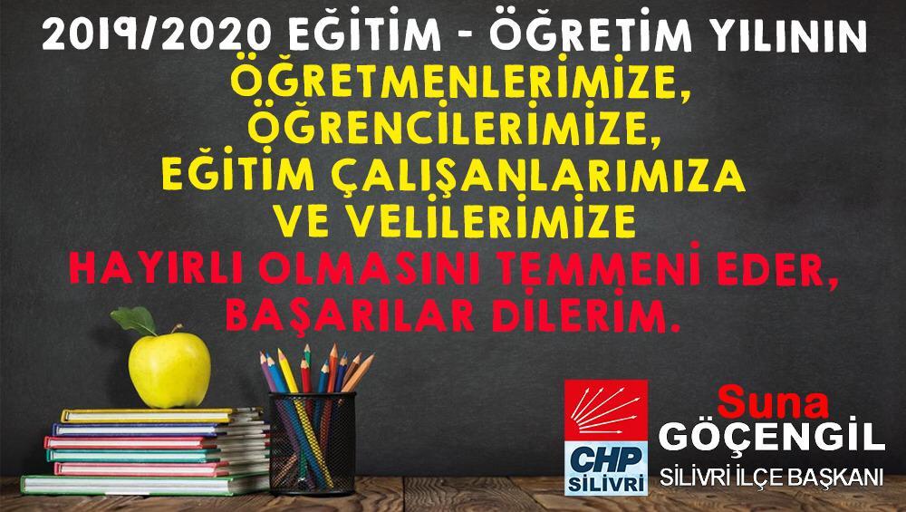 Cumhuriyet Halk Partisi Silivri İlçe Başkanı Suna Göçengil, yarın başlayacak olan 2019-2020 Eğitim Öğretim yılı münasebeti ile mesaj yayımladı.