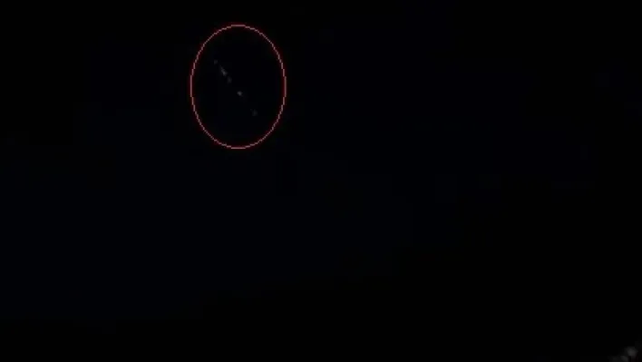 Kocaeli'de şehrin farklı noktalarından gökyüzünde görüntülenen sıralı halede ışıklar merak uyandırdı.
