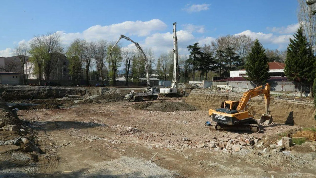 Depreme dayanıksız olduğu belirlenerek yıkılan ve yeniden yapımına başlanan Gölcük Hükümet Konağı’nda çalışmalar sürüyor.