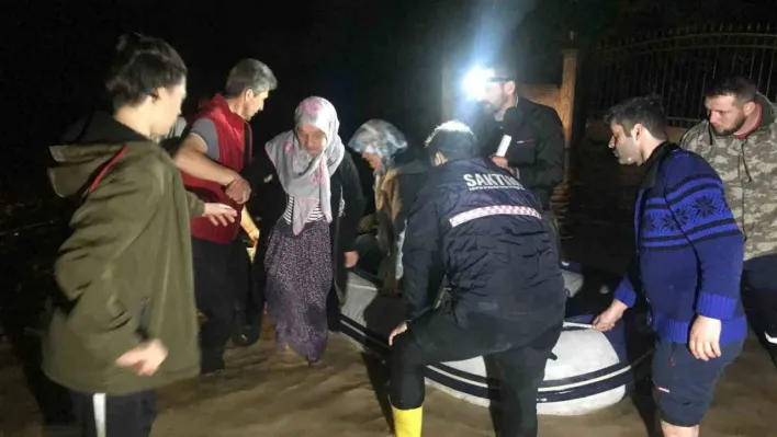 Sakarya genelinde etkili olan kuvvetli sağanak yağış birçok noktada sel ve su baskınlarına sebep oldu. Geceden beri etkisini gösteren şiddetli sağanak yolları adeta göle çevirdi. Bu çerçevede Hendek ilçesi Beyküyü Mahallesi’nde yağış neticesinde oluşan sel suları evlere kadar girerken vatandaşlar, Sakarya Arama Kurtarma ve Yangın Timi (SAKTİM) ekiplerince bot ve iş makineleriyle tahliye edildi. Yaşadıklarını anlatan Emre Turan, “Evde uyuyorduk. Yan komşumuz seslenince uyanıp dışarı çıktık ve araçları yoldan çıkarttık. Geriye dönmeye gittiğimizde ise evin içine su girmişti anlık olarak yükselmişti. Yaklaşık bir metre su derinliği var. SAKTİM ekipleri de aileme ve komşularıma yardım ediyor” dedi.