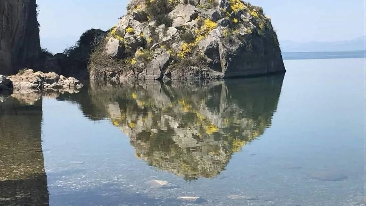 Bursa’nın İznik ilçesinde, göl kıyısındaki Müşküle Kayası’nın suya yansıyan görüntüsü üzerinde beliren figürler dikkat çekiyor. Kurukafa, aslan ve maymuna benzetilen figürler sosyal medyada paylaşım rekoru kırıyor.