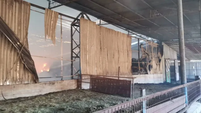 Gönen'de büyükbaş hayvan çiftliğinde yangın çıktı