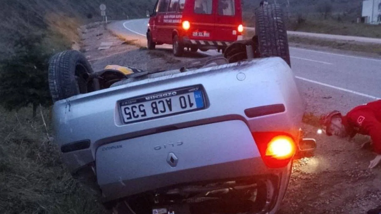 Gönen'de otomobil takla attı, 3 kişi yaralandı