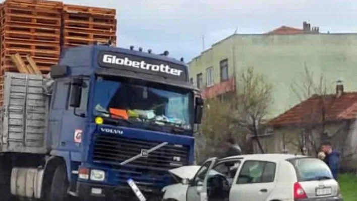 Gönen'de palet yüklü tır ile otomobil kafa kafaya çarpıştı