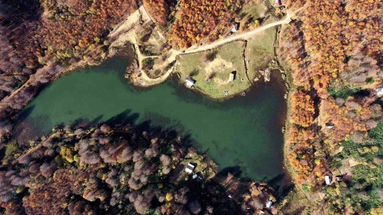 Sakarya’nın Akyazı ilçesi Güzlek Mahallesi mevkiinde bulunan Keremali Yaylası’nda sonbahar esintisi yaşanıyor. Çevre iller başta olmak üzere Ankara, İstanbul ve Bursa gibi birçok ilden yüzlerce misafirini ağırlayan Keremali Yaylası’nda oluşan renk cümbüşü hayran bırakıyor. Dağ yürüyüşü, kampçılık, izcilik, dağcılık gibi etkinliklere de ev sahipliği yapan ve zirvesi bin 543 metre yükseklikte olan yaylanın her bir noktası ayrı ayrı kartpostallık görüntülere sahne oluyor. Sonbaharın en güzel renklerini görmek ve o anları kayıt altına almak isteyen fotoğrafçı ve doğaseverler de bölgeye akın ediyor. Görsel şölenin yaşandığı yayla, gölü ve çevresi havadan da görüntülendi.