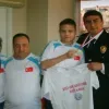 Yunuslar, Güntekin’e çiçek, ‘polis amca sizi çok seviyoruz’ yazılı tşört ve kulübün madalyasını hediye ettiler.