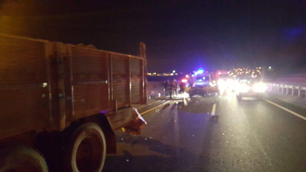 Gümüşyaka'da meydana gelen kazada seyir halindeki kamyona arkadan çarpan hafif ticari araç içersindeki 5 kişi yaralandı.