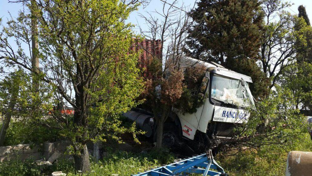 Gümüşyaka D-100 Karayolu üzerinde meydana gelen kazada sürücünün direksiyon hâkimiyetini kaybeden tır, yoldan çıkarak karşı şeride oradan da bir evin bahçesine uçtu. Kazada araç sürücüsü yaralandı.