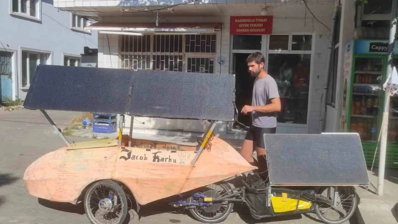 Fransa’nın Paris şehrinde yaşayan Fas asıllı Jacob Karhu, kendi yapımı olan ve tamamen güneş enerjisiyle çalışan ilginç aracıyla binlerce kilometre yolu aşarak İstanbul’a geldi. İstanbul’da bir süre gezen Karhu, geri dönüş yolunda Kırklareli’nin Vize ilçesine bağlı Sergen köyünde mola verdi. Paris Üniversitesi İklim ve Çevre Bilimleri alanında Çevre ve İklim Değişikliği üzerine doktora eğitime devam eden Karhu, iklim değişikliğine dikkat çekmek ve çevreci araçların önemini göstermek amacıyla tamamen kendi yapımı olan, güneş enerji panelleriyle enerjisini güneşten alan aracıyla Paris’ten yola çıkarak İstanbul’a geldi. Panellerin yetersiz kaldığı durumda pedallarını kullandığı aracıyla seyahat eden Karhu, İstanbul’a hayran kaldığını belirterek misafirperverlikleri için Türk halkına teşekkür etti.