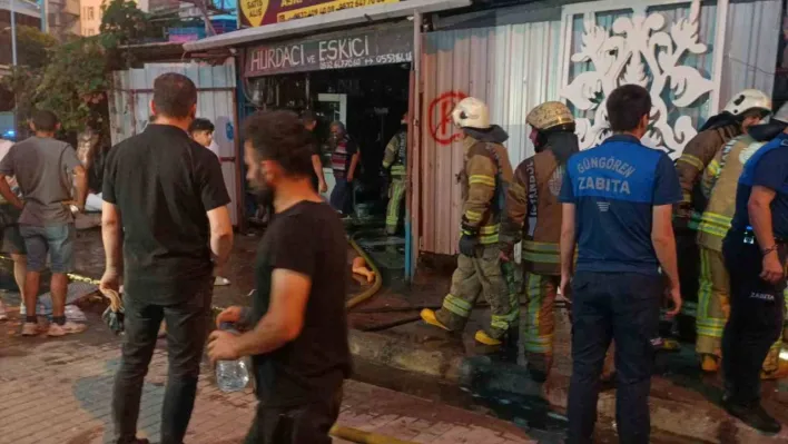 Güngören'de ikinci el eşya dükkanı alev alev yandı